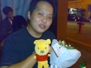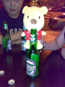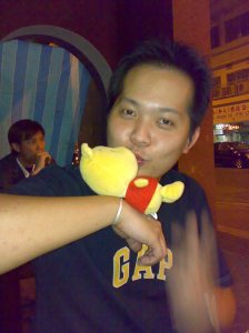 I’m so tired now. Went to work this morning, then headed home… baby called me and i was about to reach JP. he asked me for dinner but then my sister was locked outside our house. so i gotta rescue her. I wanted to have dinner with him if not for my sister. but then he sounded like i don’t wanna have dinner with him. =[ and this makes me sad. then i fall aslp while waiting for phone calls. it end up, peili & val played me out. i knew it. javier ask me go prawn fishing instead, but i wasn’t in the mood or dressed for that. lucky caca and lipeng came. otherwise i will be bored to death. haha. we waited for hours to play a game of pool. and it was because i ‘sent’ my sister to talk to that guy. LOL. then we went out to accompany my sis, because she’s eating.. then we had some winnie the pooh photo taking session. LOL.