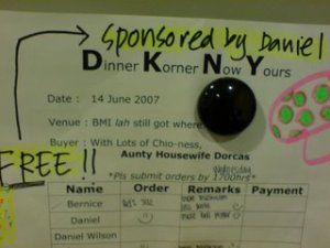 The DKNY (Dinner Korner Now Yours) on thursday. That’s very nice of our boss no.2 to give us treat. (on his own accord, it’s not everytime “forced” by jaymee.) and so we had 2 free dinner for whole of this week. isn’t that cool? LOL