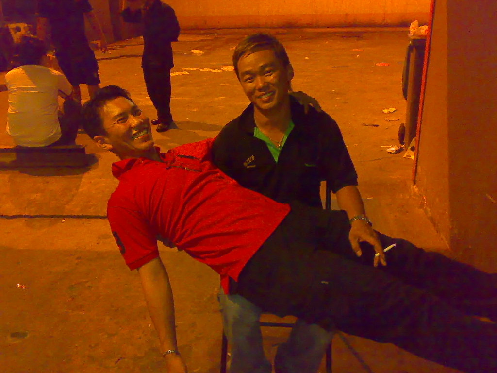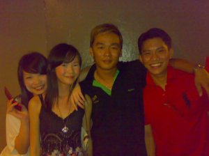 me & Peili went to Newton to meet up with Sky a.k.a Lao Pa for dinner… but both of us are late because i overslept. lol. then after dinner we went to a Thai Pub which is located at Golden Mile. There are 4 sexy female thai singers and 2 male singers. so, they take turns to dance and sing. and the best part was one of the male singer became a ‘woman’… and the best part is, he actually can sing “if i got 1 million” in hokkien. LOL. and as usual, lao pa never admit that he’s drunk. and he can’t even say out his own speech though he wrote on a piece of paper (this is so unexpected). then kuan chong took over him and help him finish his speech in less than 3 mins.. i have actually recorded the part where sky was having his speech.. but it was not stored in my hp because i got a call from baby. nevermind, at least we have the speech. and sky literally forced us to go Queenstown to play pool.. but me & peili did something bad, which is we pang seh him once he got off the cab at the Queenstown townclub. but then chang yuan and co are there already.. so we are not that bad. =X