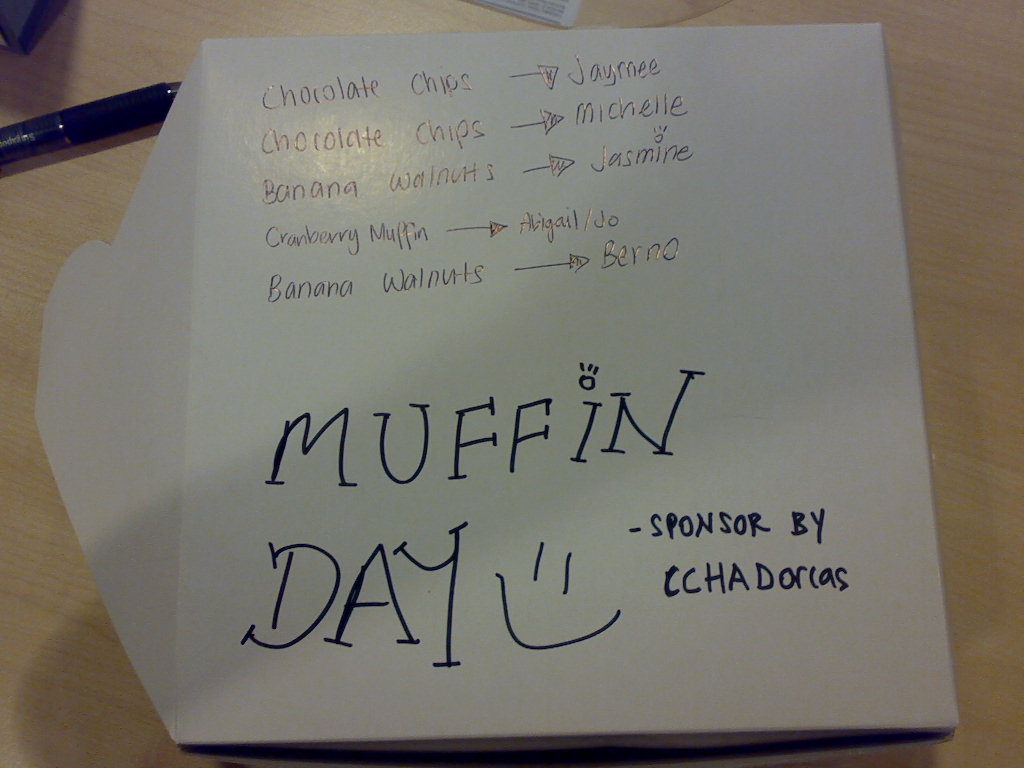Yes, the kiasu me, had my name FIRST. i love MUFFINS. food makes me happy. =]