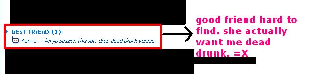 Trap October 13, 2007April 18, 2010Categories UncategorizedLeave a Comment on Trap i saw this. and i am shocked. LoL. my qing ren wants me dead drunk today. omgosh. i must be careful about that. it’s trap. i need help. LoL. Share this: Click to share on Facebook (Opens in new window) Facebook Click to share on X (Opens in new window) X Like Loading... Related Published by CraftyFishy View all posts by CraftyFishy