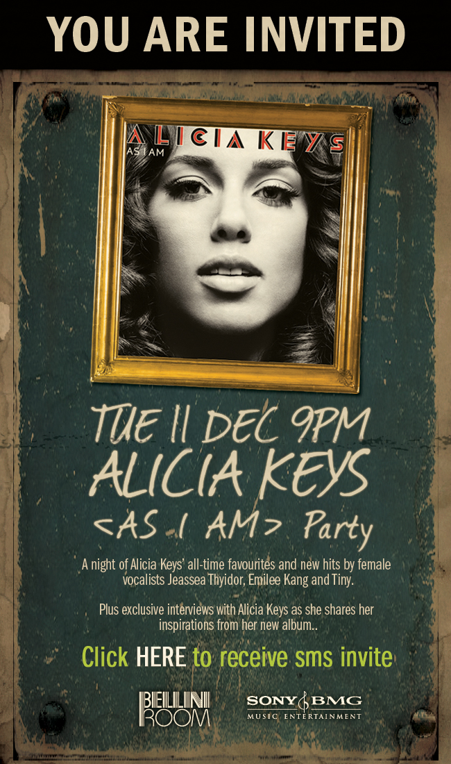 alicia keys November 27, 2007April 18, 2010Categories UncategorizedLeave a Comment on alicia keys Alicia Keys is coming. Whose interested? Share this: Click to share on Facebook (Opens in new window) Facebook Click to share on X (Opens in new window) X Like Loading... Related Published by CraftyFishy View all posts by CraftyFishy