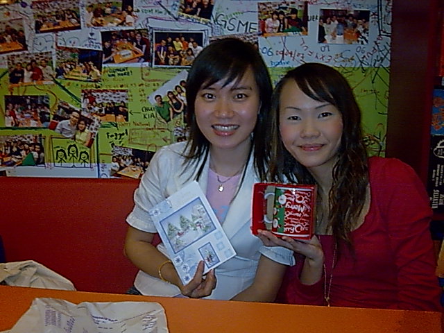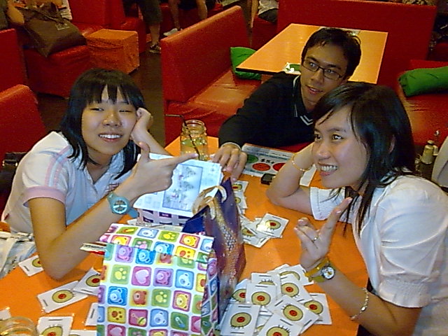 It’s Christmas season again. So it’s also time to meet up with people you have not seen for ages. =] and i did. I met up with some of the Poly friends and 1 of them, i didn’t see before. =X anyways, it’s fun. We went to this “Pitstop” cafe and had our dinner and played some games there. we had fun testing our reflective system. apparently, it’s either we left our brain home or we are just slow lah. LOL. It’s so fun, because i was like disturbing the servers there. oh well. hope they know it’s nothing offensive. heh heh. And there is present exchange. And we left the place at about 9plus. =] gonna head off to bed soon. cos i m feeling tired. yup. nitey world.