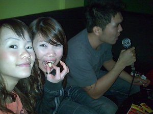 we went to kbox instead of ice skating today, reason being: too little people ice skate and too many people watching. LOL. that actually scares the hell out of us. seriously. we had a long and fun time singing. LOL. we went in since 7p.m and came out like 12mn? hee. Justin went to buy Mac for us because we are hungery (hungry, just in case you tot i don’t know how to spell it. LOL). Peili got a new hp. it’s 5MP. and yes, we will have a lot of fun time taking pictures. cam whores we are. LOL. well, time to tuck into bed… it’s a working day tml. awww.