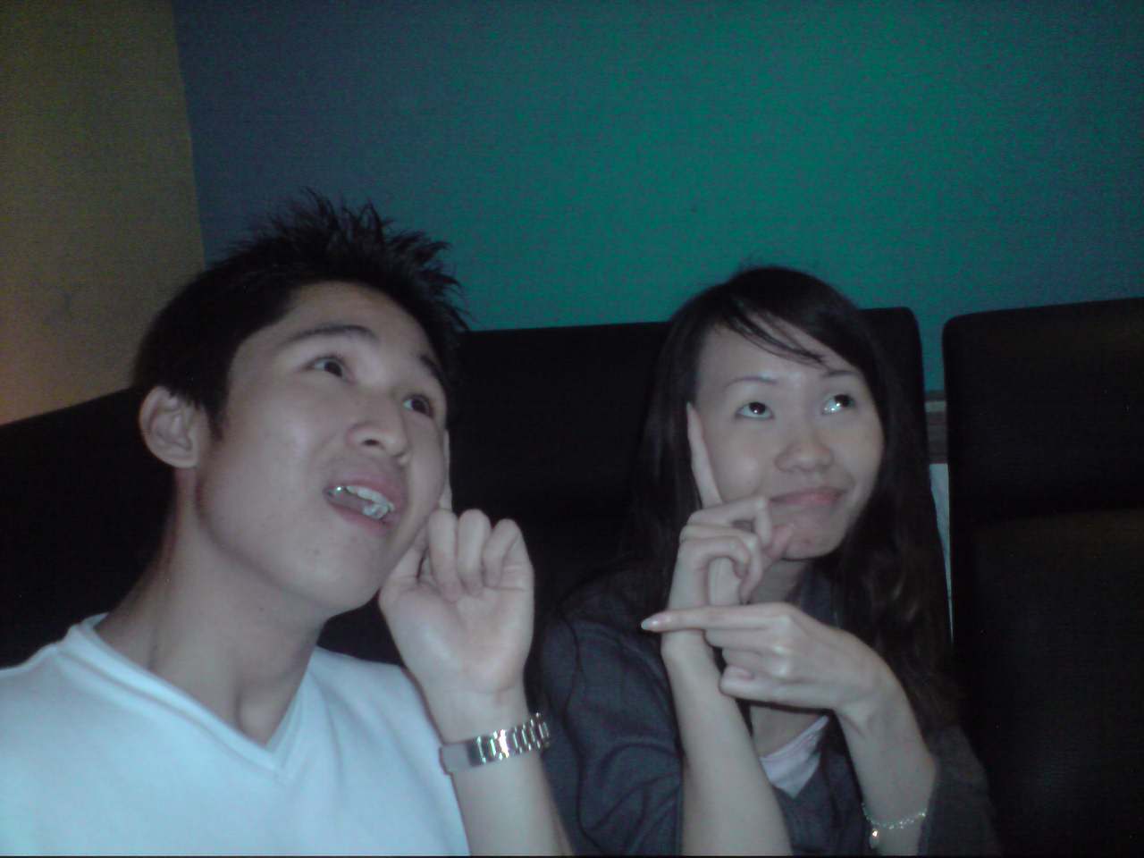 Ok, what’s life without entertainment and some dumb pictures? LOL. And i think i am pretty Uglee here. =| It’s a day of meeting up with new fwens. Yeah. the kbox session was supposed to be cancelled by the way. Anyways, it was so fun. Went to Kbox today with Kerine, Guorong and Samuel. and the guys are like 40 mins late?! What’s with the guys now? Seriously, lucky we had our dinner and crapping around. Oh well. Kbox is fun by taking weird pictures and real stupid pictures (shown above). And yea, i look like a retard totally. LOL. 没有形象anymore… i don’t have any anyways. =] then we head to JP (with Evelyn, her sis and Don) to watch “27 Dresses“. It’s the kind of romantic movie any girls would watch. Yeah.