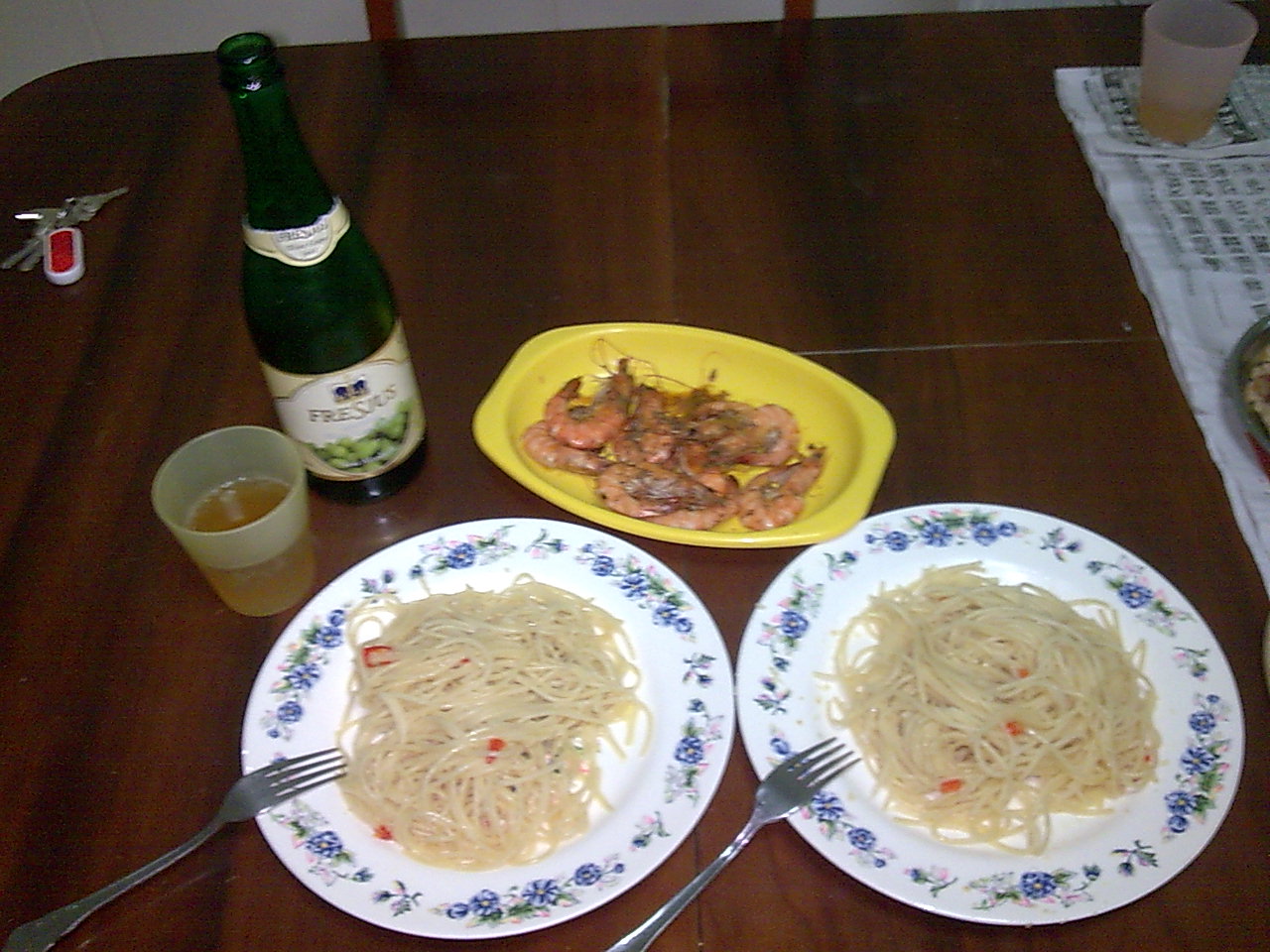 Our first attempt to cook dinner tonight. We cook my favorite food! Spaghetti with garlic and Olive oil, and garlic butter prawns. and we bought a bottle of FAKE champagne. LOL. act romantic. We only miss out the candle part. Oh well. and then spend my night here doing nothing. At least i have my lappy with me. Feeling so lazy, so i did not put on any make up, anyways i doubt we will be going out (except the part we went to Prime Supermarket to get our ingredients). wanted to go skating today, but because bf doesn’t wanna go, peili suggested