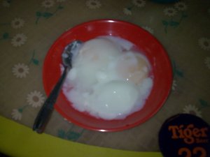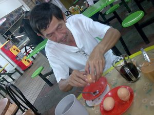 Anyways, that aside. We (me, my younger sis, younger bro and dad) went for breakfast like almost 4am because we couldn’t play Mahjong at the funeral because 大舅 was crying so bitterly. And i was on winning spree ok? Nevermind about that because i can play mahjong anytime! hahaha. and my father show us his fatherly love by helping us with the soft boiled egg. because it’s freaking hot la!