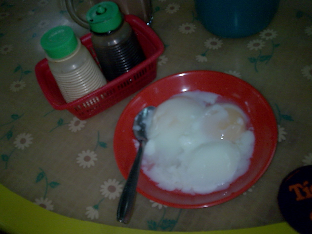 Anyways, that aside. We (me, my younger sis, younger bro and dad) went for breakfast like almost 4am because we couldn’t play Mahjong at the funeral because 大舅 was crying so bitterly. And i was on winning spree ok? Nevermind about that because i can play mahjong anytime! hahaha. and my father show us his fatherly love by helping us with the soft boiled egg. because it’s freaking hot la!