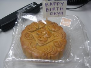 The MOONCAKE as his birthday cake. 😉