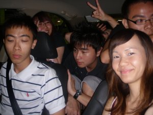 And, this is 7 people squeezing in a car. =X Of cos, everyone still can pose lah. The ‘twist’ hand i think belongs to Jun Quan. =D