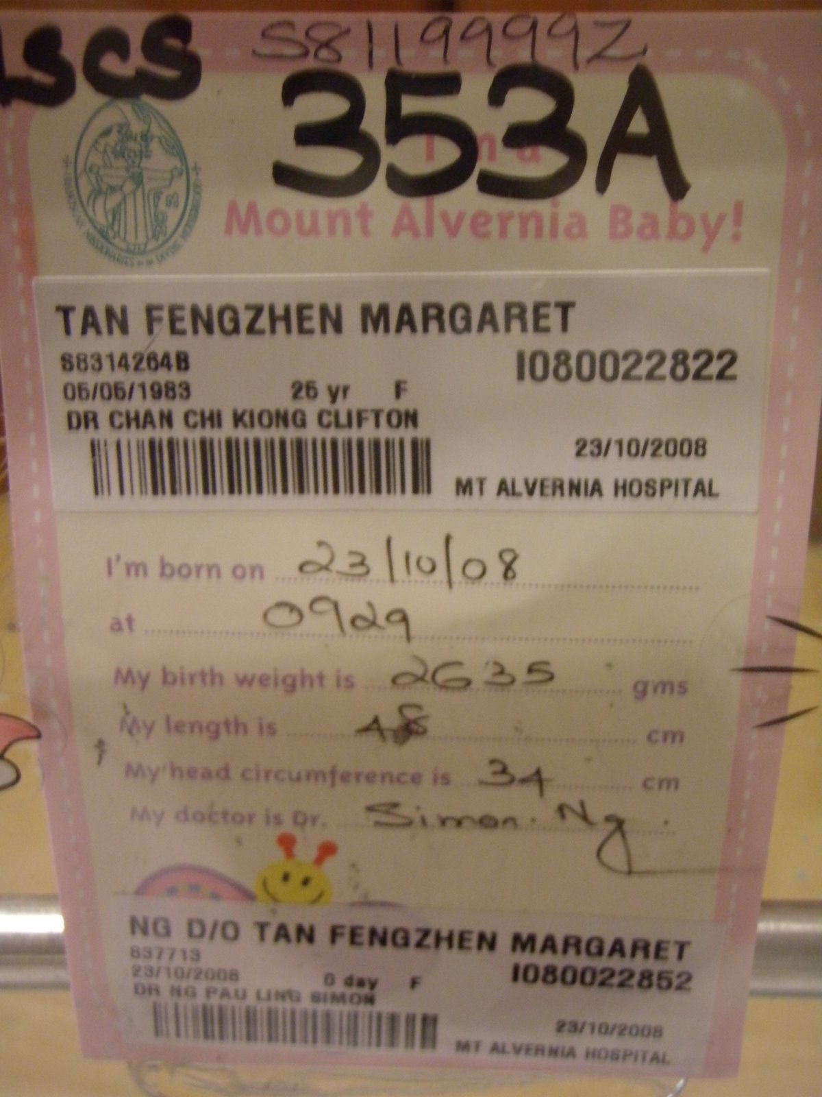 And the baby and my sister will be discharge on Sunday. And I will be heading down to the hospital on Satuday, I think. That’s all folks for the baby. =]