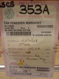 My little niece is born today! And I’m one level up becoming 阿姨 and my sister became a mother for the first time. What an joyous occasion! So I went to the hospital with Nicholas to see my little niece. And by the time I reached the hospital is already 7p.m because there is traffic jam lo. We took train to Novena and took a shuttle bus, else, we don’t know how to get there. Yup, took some pics of her sleeping. She’s really so cute and soft, and I carried her 1st time in my arms! =D