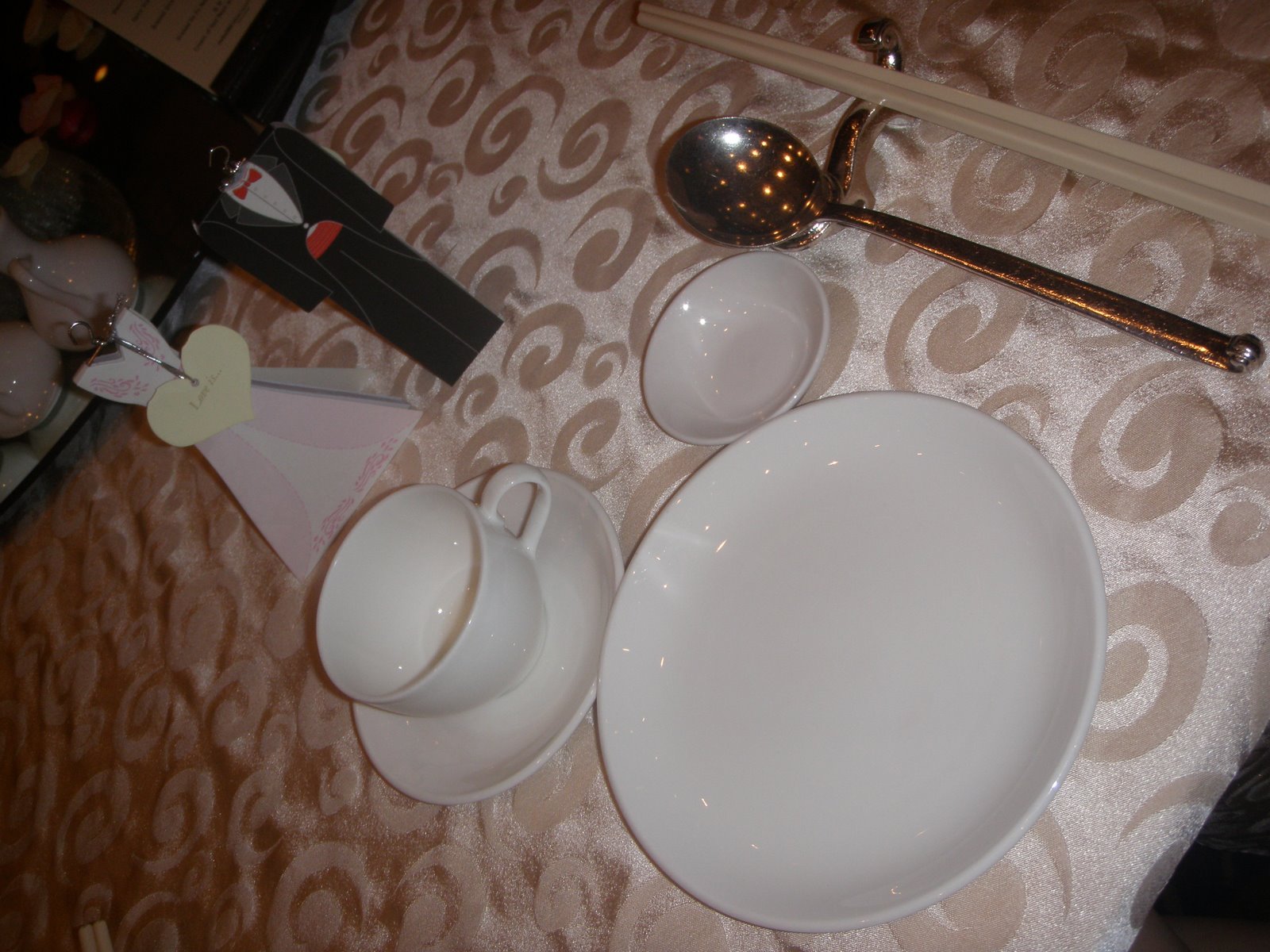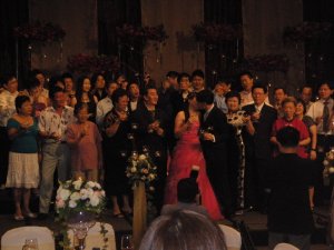 Went for my cousin’s wedding on Sunday. It’s held at Merchant Court. =] Finally huh? Some decent looking hotel, but the food is not that fantastic. Ehhh, actually nothing much to blog leh, because there isn’t anyone too handsome or too chio for me to take picture liao. Sad-ed. Anyways, my father was very naughty. He gulp the whole glass of red wine and looked like a cooked lobster and he was disurbing the new waiter who served our table because he spilled my tea. LOL. That scene was hilarious. The whole thing ends at 11p.m, and then we headed home. =D