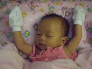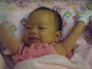 I went to visit Alyssa on Sunday! Because it’s her first month and she’s dressed up! So pretty and cute. =]