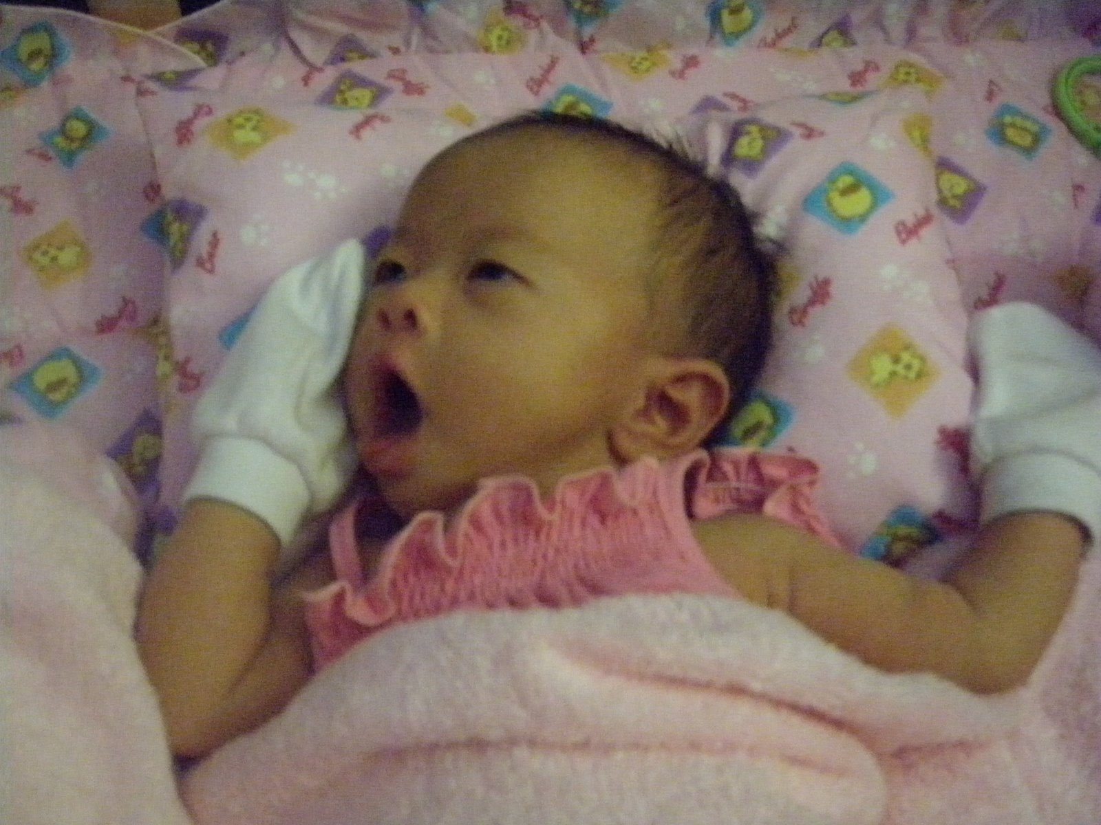 I went to visit Alyssa on Sunday! Because it’s her first month and she’s dressed up! So pretty and cute. =]