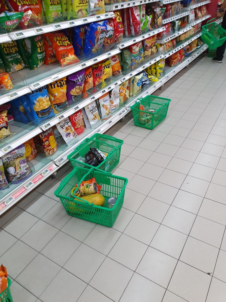 Baskets lying around, Rice section only left brown rice. And some more premium rice.
